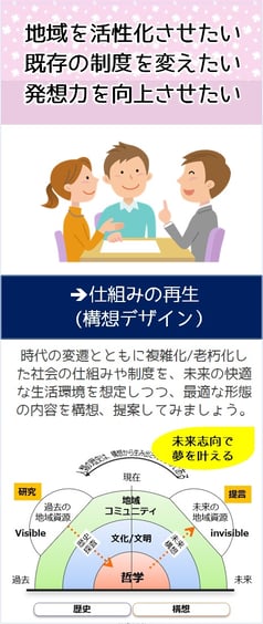 知識考房(Sophia Design Works)は、社会貢献、地域活性化、環境問題、教育などの課題に対して、人々や地域の能力開発を念頭に様々な構想つくりに励んでいます。特に、戦略思考の基盤となる歴史/文化/制度/技術など、現代社会における複雑な事象を紐解き視覚化。新たな活動の概念を発想させることに注力し、次世代の人々や地域の成長に貢献したいと考えています
